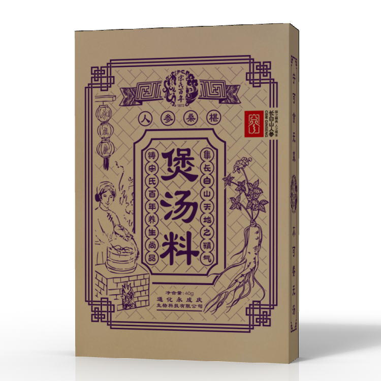 人參桑椹煲湯料 本款煲湯料精選人參、桑椹、決明子、槐米、菊花等多味優(yōu)質藥食同源的中草藥加工而成。 人參桑椹等配伍特點:清肝明目,養(yǎng)血補腎。 可與羊肉、牛肉、鯽魚、雞肉搭配使用,與鯽魚、或者雞肉搭配使用為最佳。 可用于普通大眾養(yǎng)生保健,是肝腎陰虛,視力疲勞,用眼過度之人士理想的滋補佳品,四季皆可使用,尤其適宜春季、夏季使用。 本款煲湯料的使用方法:將6兩(300克)的肉類及本煲湯料一起放入適量的水中,以文火煮2——5個小時,調味食用。